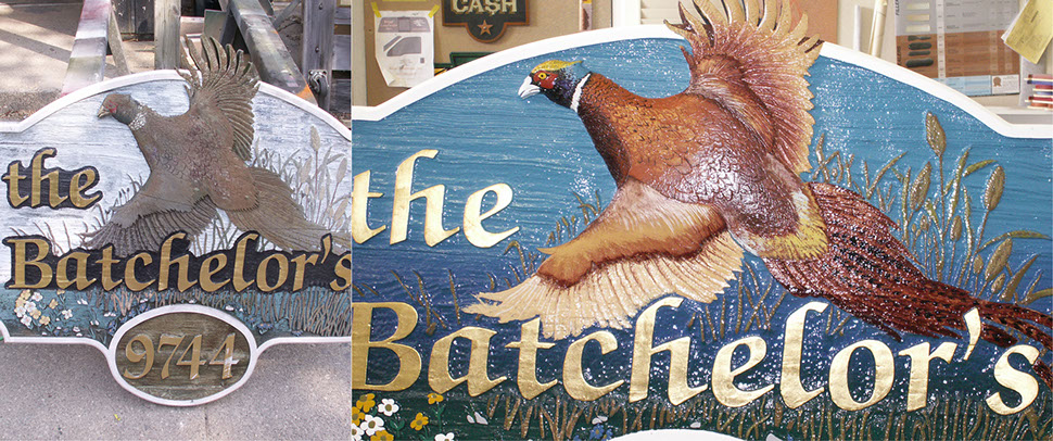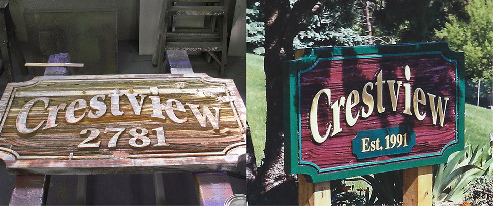 Routed 2 level PVC letters w/ automotive finish and UV clear coat.